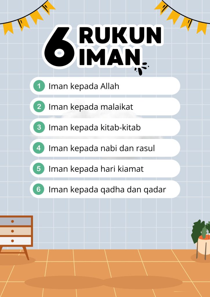 Bismillah, Assalamualaikum warahmatulahi wabarakatuh, I am Ibrahim Haidar or you can call me Ibam, I am in 7th grade, this is my Islamic project, this project took 3 hours to make, this project explains the 6 pillars of faith, we must know the pillars of faith, especially if we are Muslims, there are many people out there who say they are Muslims but don’t know the 6 pillars of faith