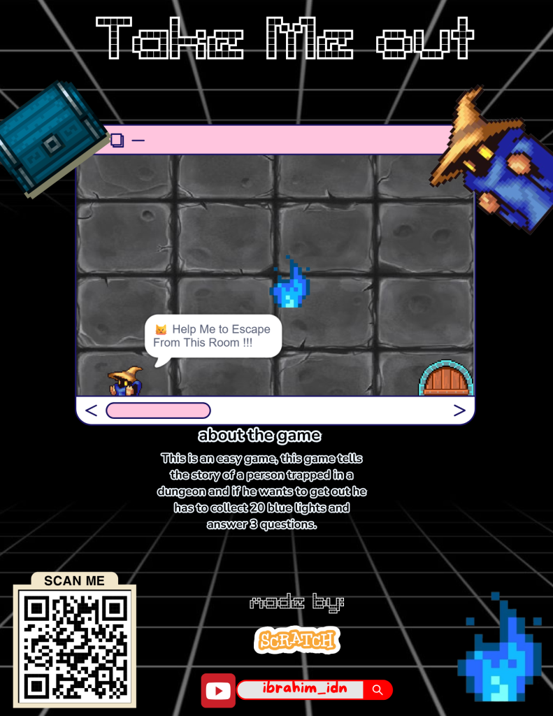 Hello friends, this is a game called “Take Me Out.” In this game, we have to help a witch escape from a dungeon. There are two levels. In the first level, we only need a blue light that will respond to random locations. In the second level, we have to answer three different questions, and then the door will open. Easy enough, right? That’s probably all I have to say about this new game. Don’t forget to subscribe to my videos, okay? Bye!